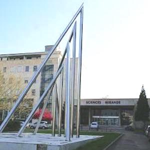 Get off at the Université stop. Cross the tracks, turn left, and walk along them for about 100 meters until you reach a metallic sculpture made of triangles, located in front of the main entrance to the Sciences Mirande building.
